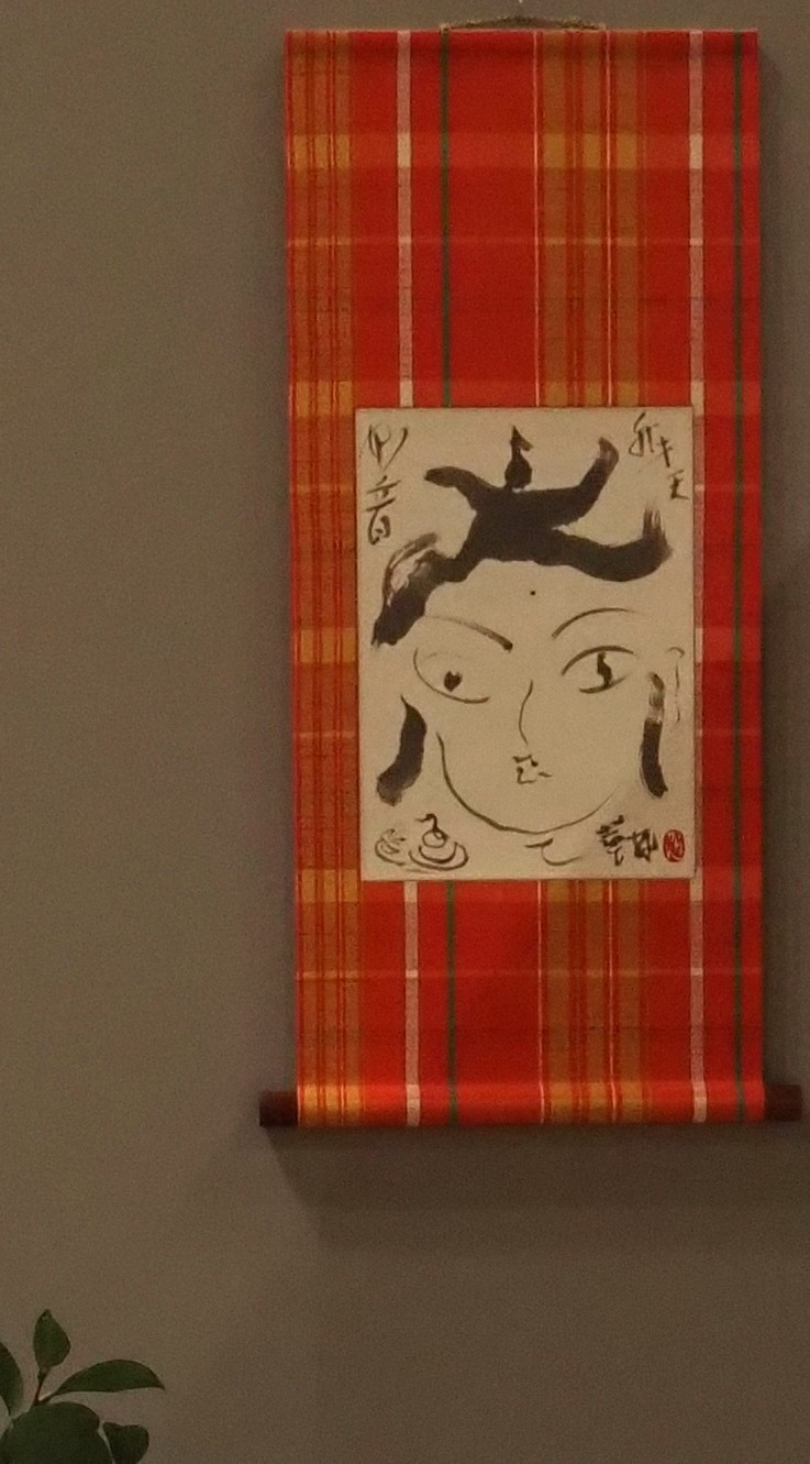妙音弁才天図 華林 日暮里での花展にて 絵/華林、椿墨 「華林苑花日記」参照 過去に制作の作品 前項作品に彩流華 前項の「言霊 はにわ・七鈴の王」に彩流華を生けていただきました。一月、金沢市、北國花展華は土橋白華さん額装は永嶋明さん 言霊 はにわ・七鈴の王 華林 2025年1月7個の鈴がついた天冠をかぶる王。福島県いわき市の神谷作遺跡から出土した埴輪から古代の神まつりをイメージしています。のちの武家文化のルーツとされます。作品は裏打ちまえ。石州半紙に、椿墨。 書「宝舟」 華林 2025年1月 裏打ち前です。重要無形文化財に指定されている石州半紙に書かせていただきました。 書「風」 華林 5月中旬の金沢市での花展にて。本紙は半紙横長。東真華さんにアスナロの彩流華・風の華を生けていただきました。 「月」 華林 華林の芸術展などで飾らせていただいた「縄文女神」「縄文男神」を描いたときに一緒に描いた数パターンのうちの一作です。本紙(作品部分)は半紙サイズ。描いたのは2023年12月。 華林 『音の形 … ひ』 下と同じ新作です。 華林 『音の形 … つ』 墨絵 今年春の新作です。表具済みです。油煙墨だったか … 。 『月に鳥』 1月に150枚かいたなかの一つ、椿墨、紙表装です。(華林)写真はクリックすると拡大します。 書「ひめ松」 華林 2011年 書「高志」 東 真華 2022年 新作 書「魚」 入野月華 2022年 新作 くまののおくのはちだいりゅうおうねこまたみょうじん (熊野の奥の八大龍王猫股明神) 絵/椿墨 華林 2009 額装 表具/永嶋 明 写真を大きくするときはクリック、タップしてください。 「白」 書/椿墨 華林 2010 軸装 華とともに 表具/永嶋 明 裂/小千谷縮写真を大きくするときはクリック、タップしてください。 剱図 絵/椿墨 華林 2016 軸装 表具/永嶋 明 裂/タイシルク、刺繍写真を大きくするときはクリック、タップしてください。 三本足の烏 絵/椿墨 華林 2011 軸装 表具/永嶋 明 裂/小千谷紬写真を大きくするときはクリック、タップしてください。 達磨図 絵/松煙墨 華林 2008 軸装 表具/永嶋 明 裂/小千谷紬写真を大きくするときはクリック、タップしてください。 龍図 絵/椿墨 華林 2008 軸装 表具/永嶋 明 裂/小千谷紬写真を大きくするときはクリック、タップしてください。 哥の聖・人麻呂(柿本人麻呂)の複製軸 長さ66㎝(各紙表装) (彩流華第23号掲載)