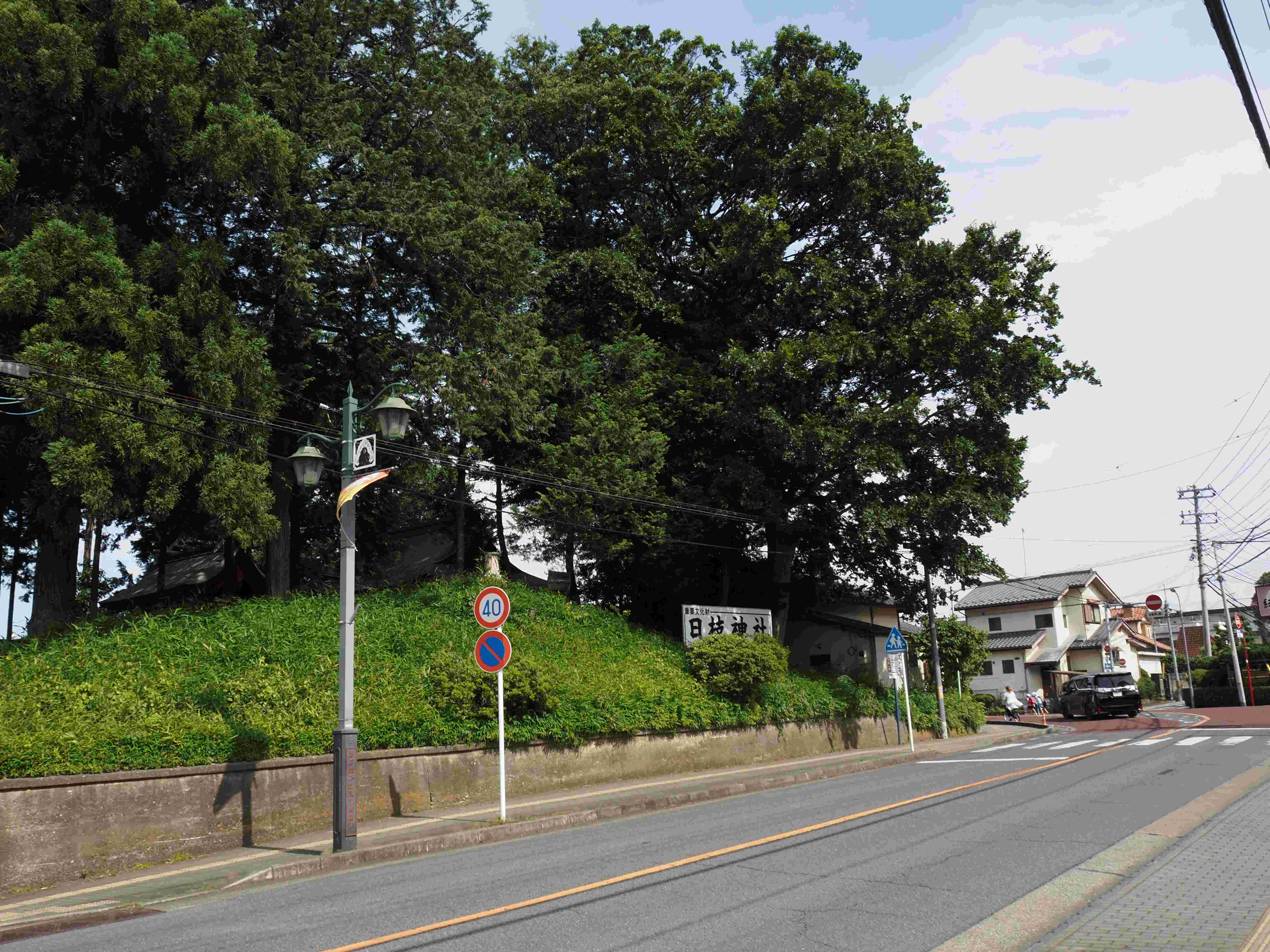 この川越市仙波の日枝神社は前方後円墳のうえに建ち、裏側からみるとその高さからそのことがうかがえる。