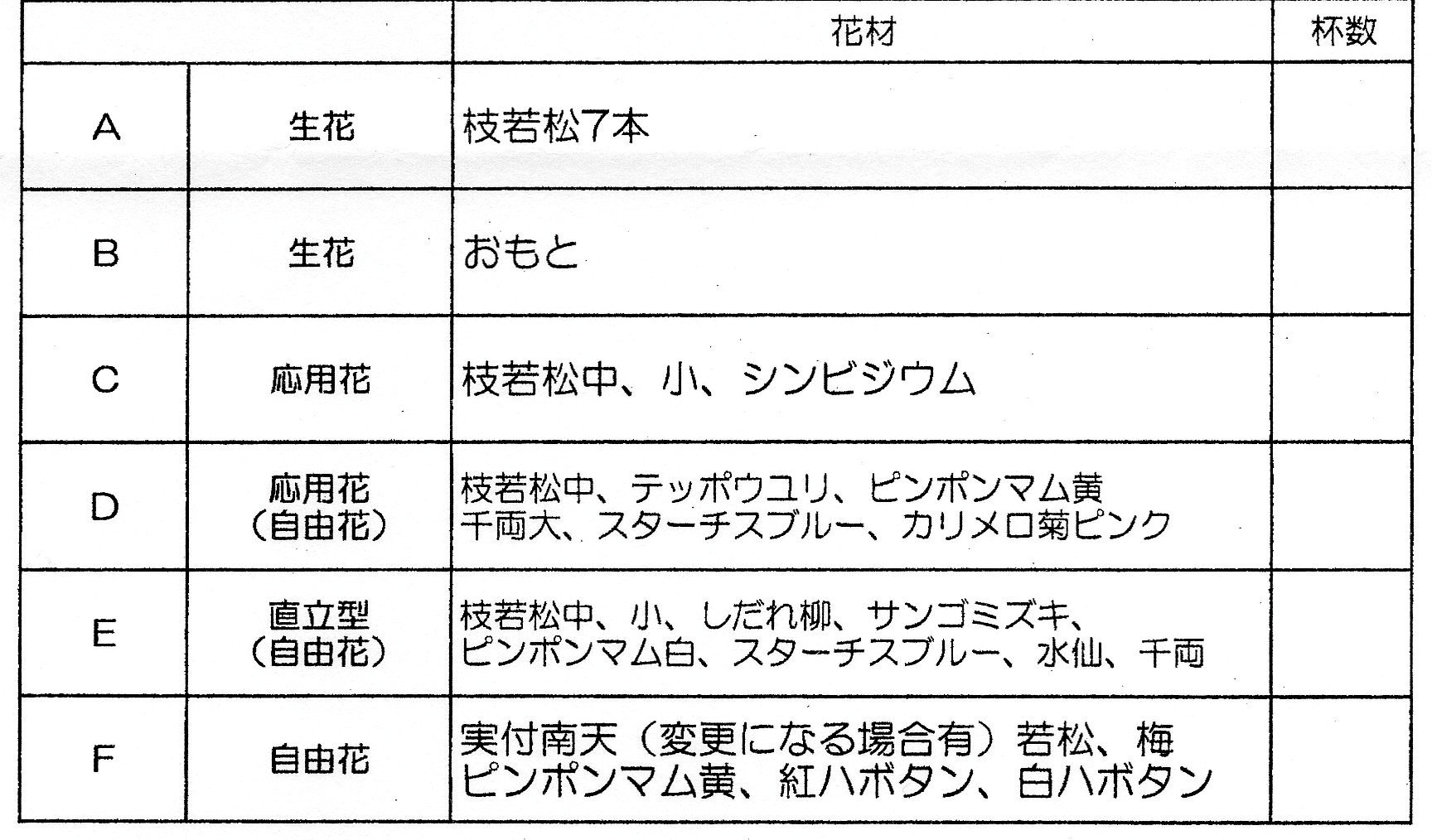 2025年12月16日(火) 古流の花だよりお正月花の取り合わせの例